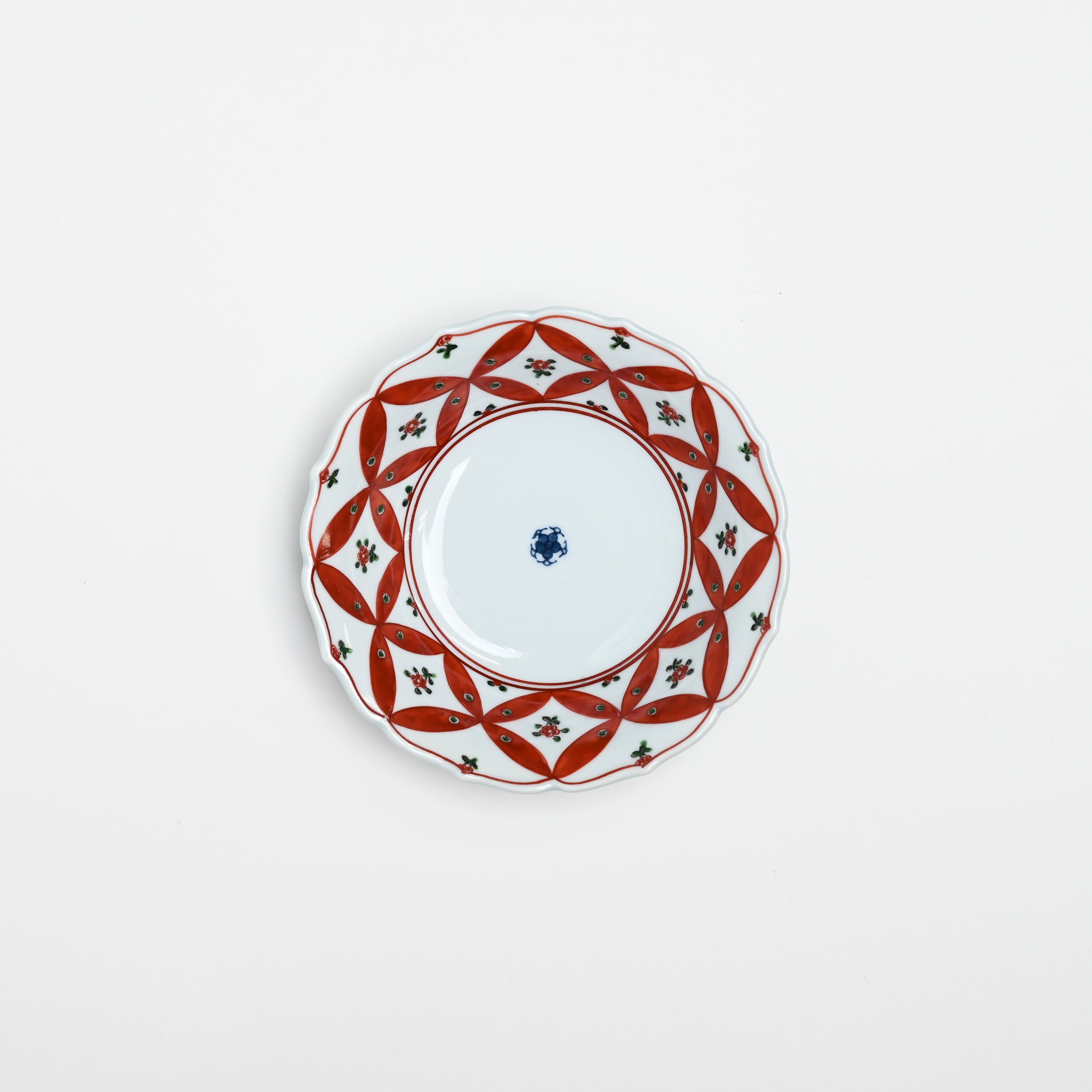 朱濃七宝小花 5寸桔梗渕皿(亮秀窯)