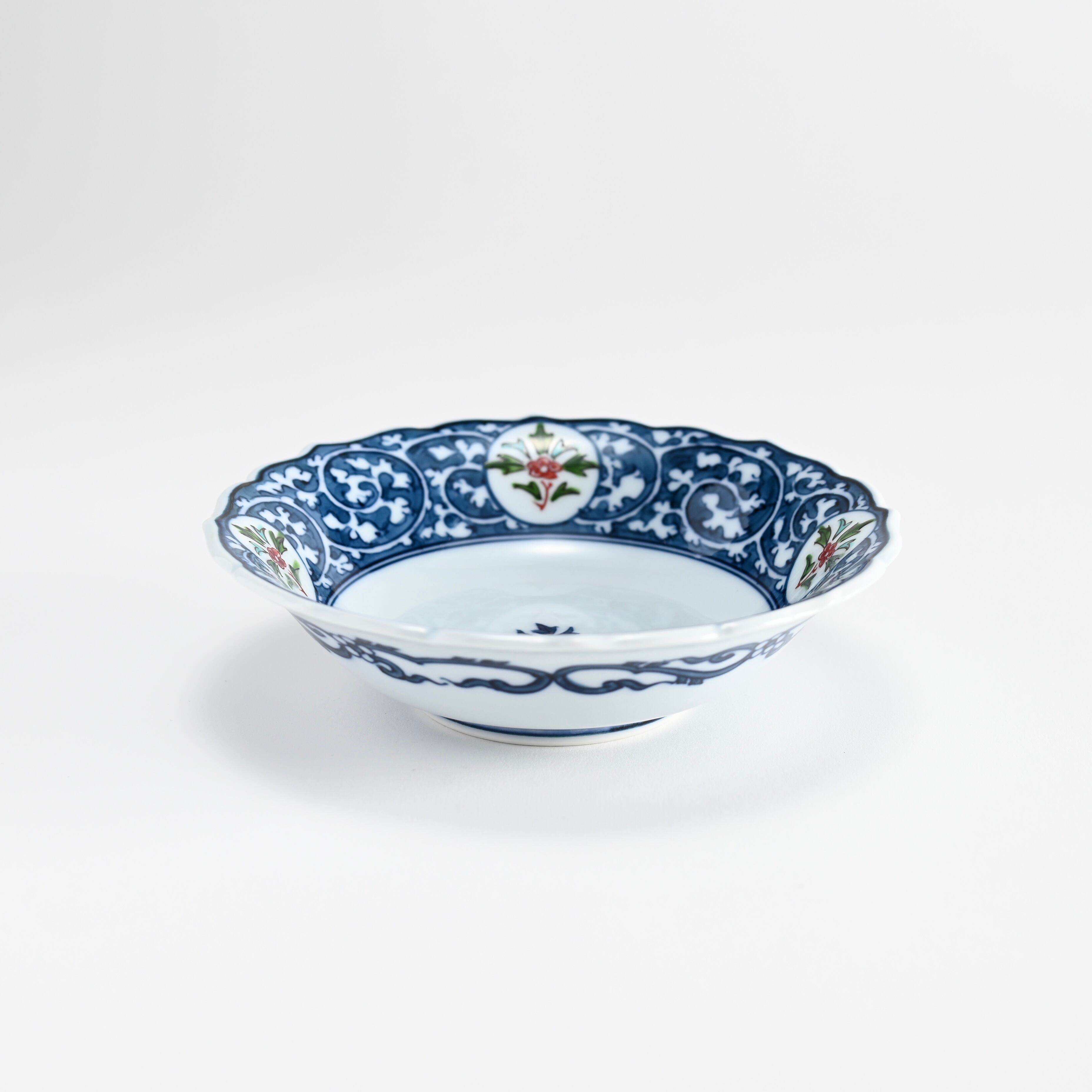 丸紋花唐草 5寸桔梗渕皿(亮秀窯)