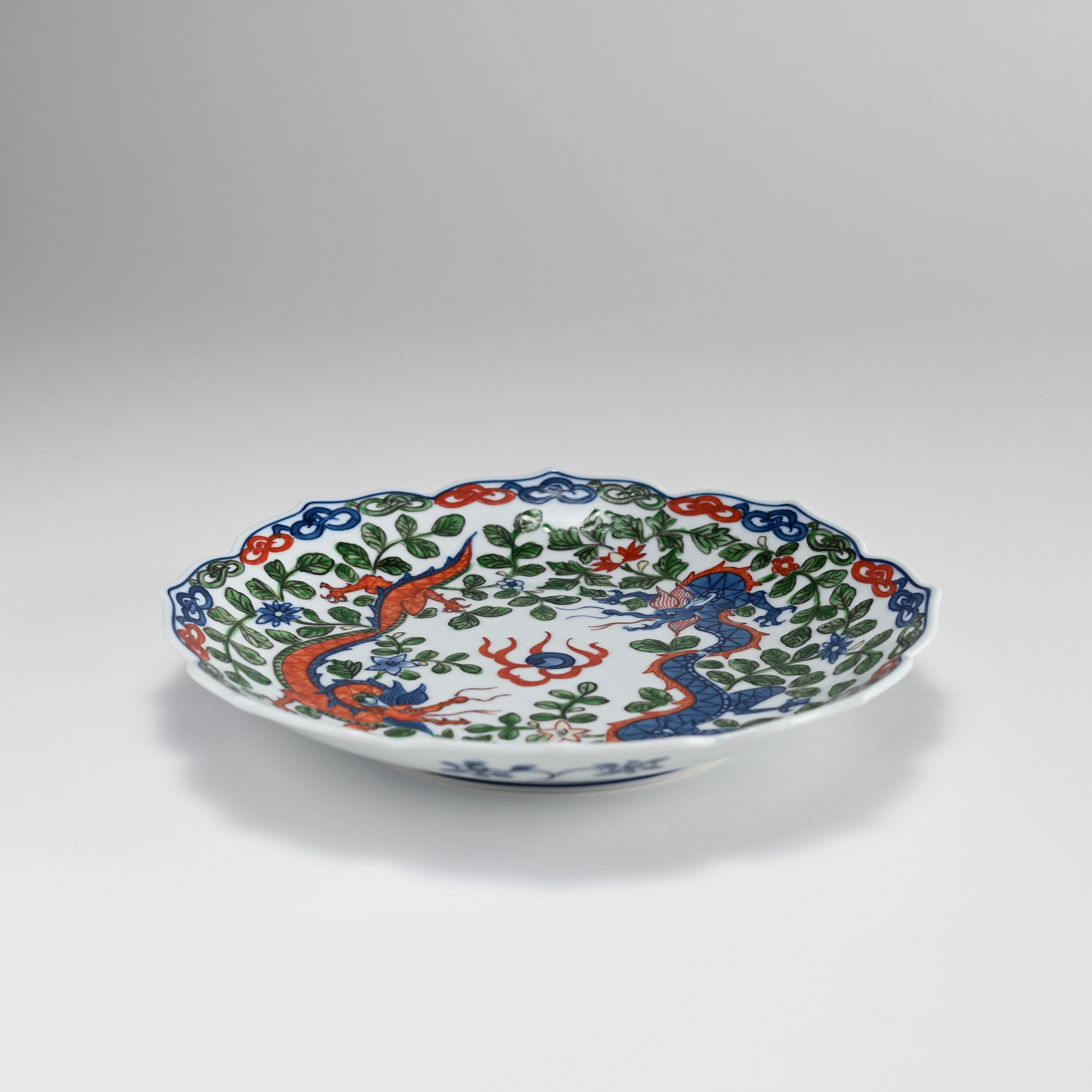 唐草双龍絵 7寸桔梗渕皿 (亮秀窯)