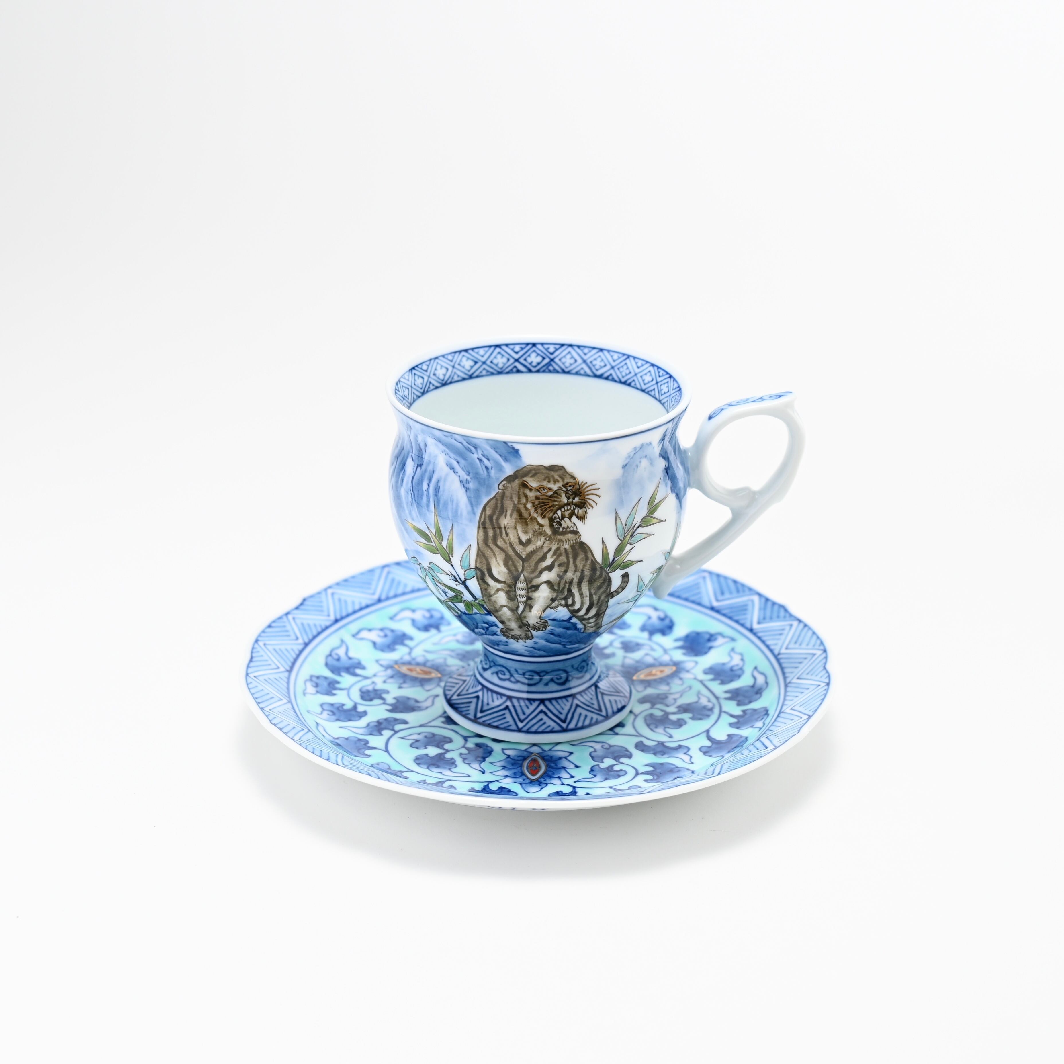 山水虎絵…このデザインは、自然の美と勇気を象徴しています。山水は生命を、虎は力強さを表し、両者が調和することで、心に力を与え、穏やかなコーヒーの時間を提供します。