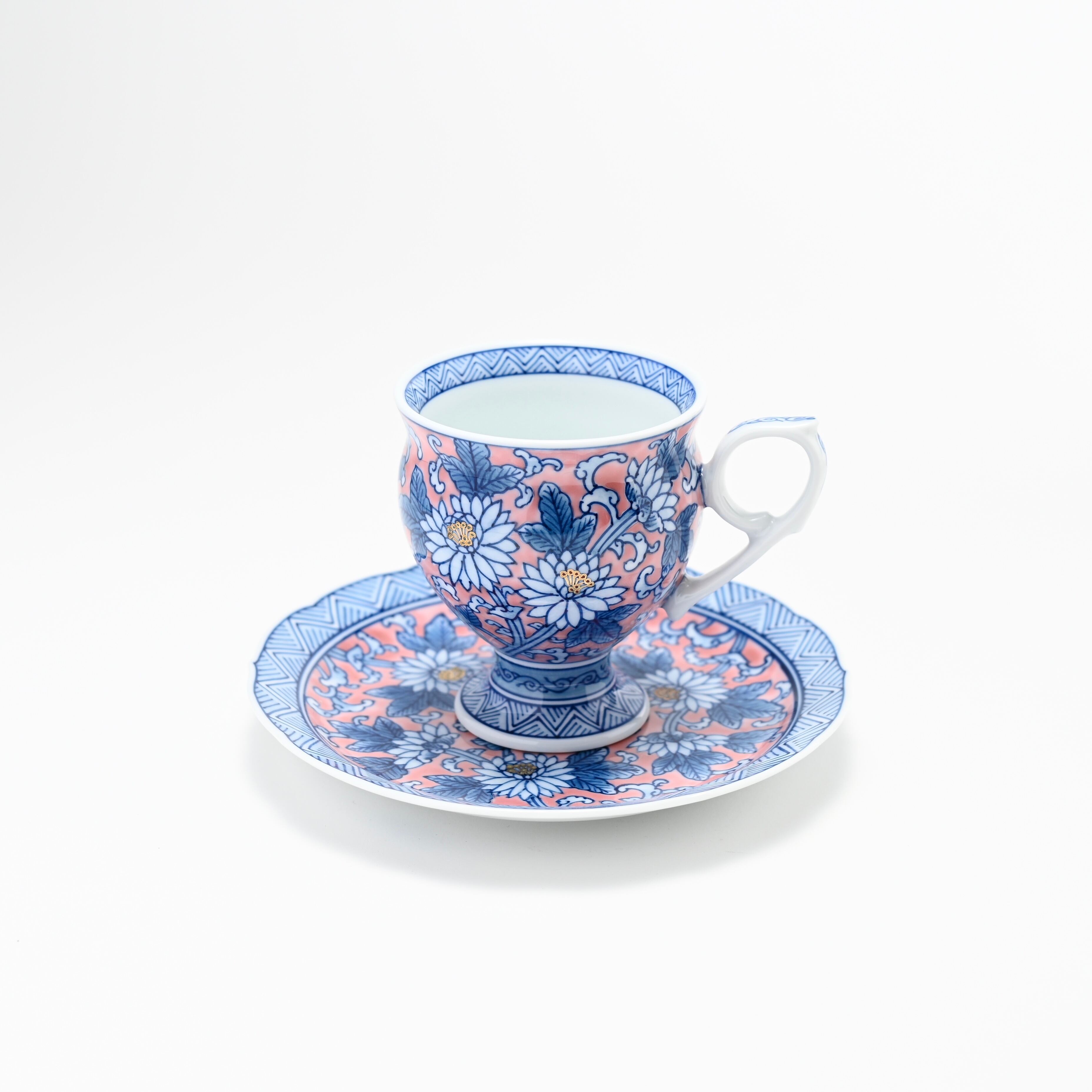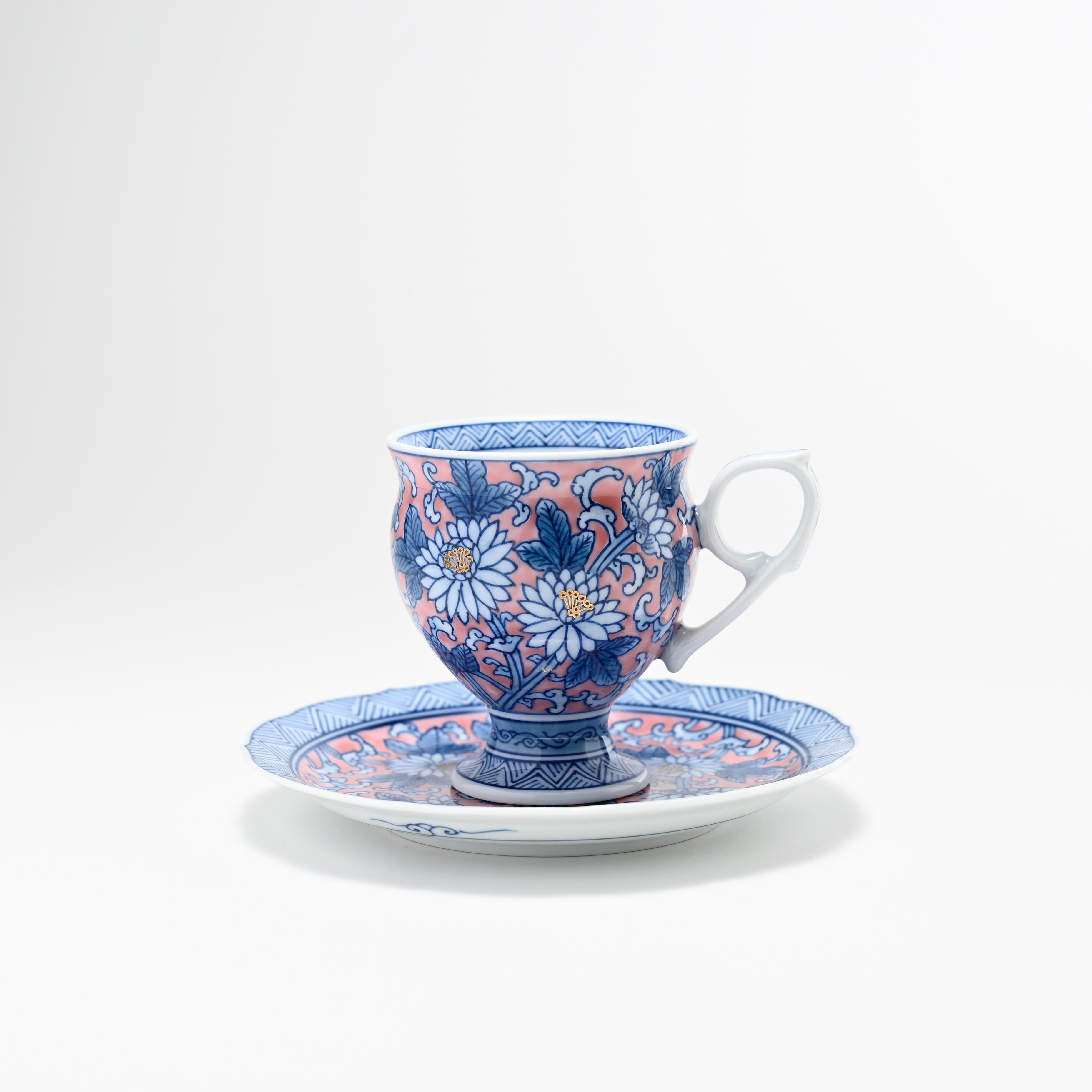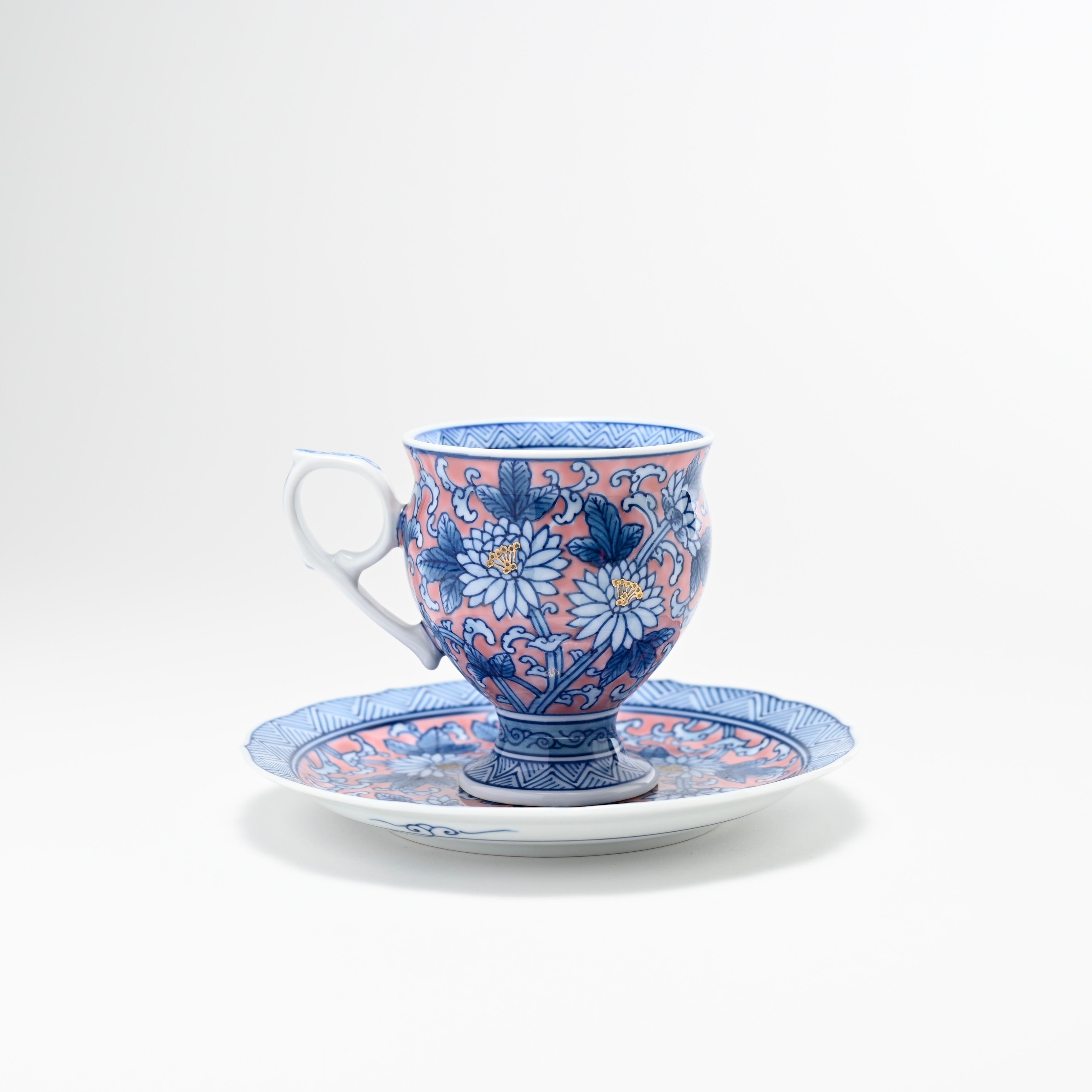 菊と唐草の絵…このデザインは、繁栄と長寿の象徴です。菊の花は高潔さを表し、唐草模様は無限の繁栄を象徴します。これらの要素が、穏やかで豊かなコーヒーの時間に特別な意味を添え、心を豊かにします。